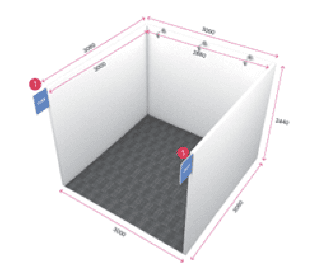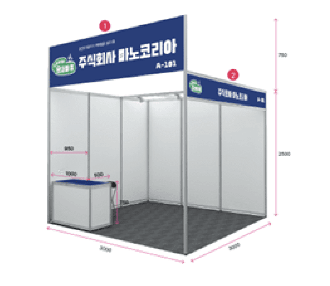 조명(내부 3개), 의자, 인포데스크 1조(업체당 1개), 콘센트 1개,